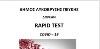 Ο Δήμος Λυκόβρυσης- Πεύκης σε συνεργασία με τον Εθνικό Οργανισμό Δημόσιας Υγείας, προχωρά στη δωρεάν διενέργεια rapid tests τη Μ.Δευτέρα 10 Απριλίου Μαρτίου στο...