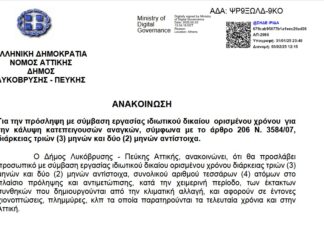 Ο Δήμος Λυκόβρυσης – Πεύκης Προχωρά σε Προσλήψεις για την Κάλυψη Κατεπειγουσών Αναγκών