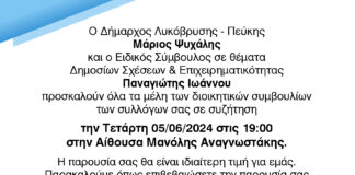 Δήμος Λυκόβρυσης - Πεύκης Ανακοινώσεις 29 Μάι 2024 Εμφανίσεις: 9 Ο Δήμαρχος Λυκόβρυσης - Πεύκης Μάριος Ψυχάλης και ο Ειδικός Σύμβουλος σε θέματα Δημοσίων Σχέσεων & Επιχειρηματικότητας Παναγιώτης...