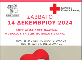 Εθελοντική αιμοδοσία την 14η Δεκεμβρίου στο Πολιτιστικό Κέντρο Αγίου Στεφάνου