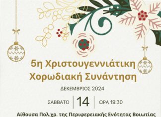 Η Μικτή Χορωδία Δήμου Διονύσου συμμετέχει στην 5η Χριστουγεννιάτικη Χορωδιακή Συνάντηση, που διοργανώνει η Μικτή Χορωδία ΕΡΚΥΝΑ Λιβαδειάς, το Σάββατο 14 Δεκεμβρίου 2024 και...