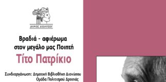 Εκδήλωση – αφιέρωμα στον ποιητή Τίτο Πατρίκιο