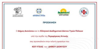 Eγκαίνια του ΚΕΠ Υγείας του Δήμου Διονύσου την Τετάρτη 5/10