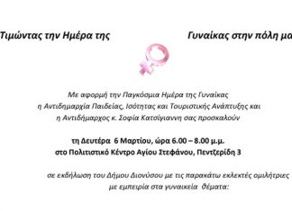Εκδήλωση του Δήμου Διονύσου για την Ημέρα Γυναίκας τη Δευτέρα 6/3