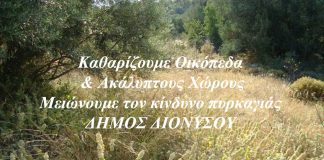 Σημαντική ανακοίνωση-έκκληση του Δήμου Διονύσου προς τους πολίτες για τον καθαρισμό Οικοπέδων και Ακάλυπτων Χώρων