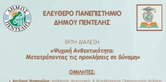 Ψυχική Ανθεκτικότητα: Η 6η εκδήλωση του Ελεύθερου Πανεπιστημίου Δήμου Πεντέλης για...
