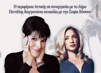 Συναυλία με τη γνωστή τραγουδίστρια Σοφία Βόσσου, διοργανώνει ο Δήμος Πεντέλης σε συνεργασία με την Περιφέρεια Αττικής, το Σάββατο 2 Ιουλίου στην Πλατεία Νέας...