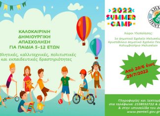 Ο Δήμος Πεντέλης ενημερώνει ότι ξεκινά από την προσεχή Δευτέρα 20/6 το πρόγραμμα καλοκαιρινής δημιουργικής απασχόλησης παιδιών ηλικίας από 5 έως 12 ετών, το...