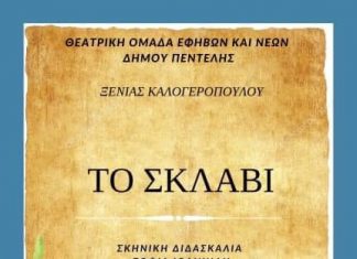 Τα τμήματα Εφηβικού και Νεανικού Θεάτρου του Δήμου Πεντέλης θα παρουσιάσουν σε συνεργασία την παράσταση “Το Σκλαβί”, της Ξένιας Καλογεροπούλου,