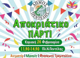 Αποκριάτικο Πάρτι – Κυριακή 26/2 από 11:30 έως 14:30 – Πλατεία Νέας Πεντέλης