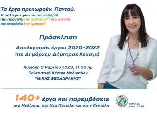 Η Δήμαρχος Πεντέλης Δήμητρα Κεχαγιά, παρουσιάζει το έργο της στους πολίτες. Κυριακή 5...