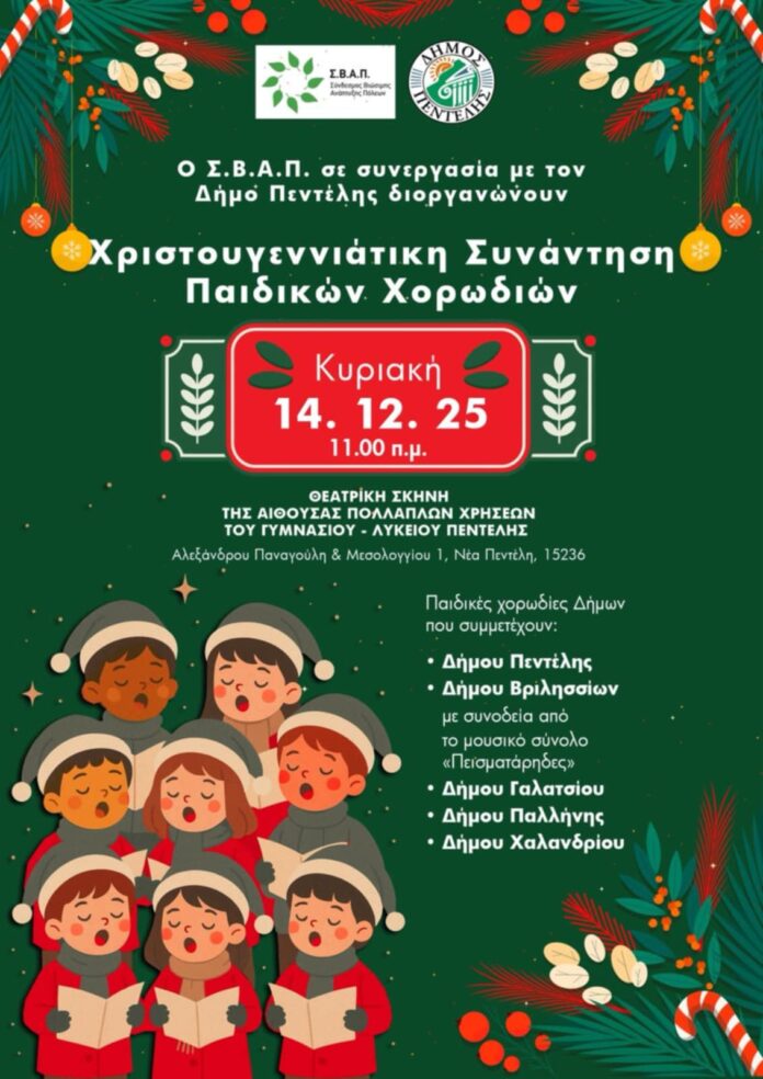Χριστουγεννιάτικη Συνάντηση Παιδικών Χορωδιών – ΣΒΑΠ σε συνεργασία με τον Δήμο Πεντέλης