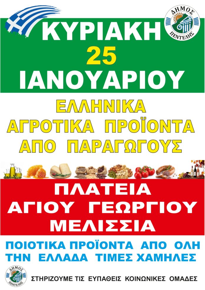ΓΕΙΤΟΝΙΚΟΙ ΔΗΜΟΙΜΕΛΙΣΙΑ – ΠΕΝΤΕΛΗ Δράση διάθεσης Ελληνικών αγροτικών προϊόντων από παραγωγούς στην Πλατεία Αγίου Γεωργίου – Κυριακή 25/1 Από maroussi city - 22 Ιανουαρίου 2026 5 μερίδιο FacebookTwitterWhatsAppLinkedinEmailViber ΚΑΤΕΒΑΣΤΕ ΤΟ APP