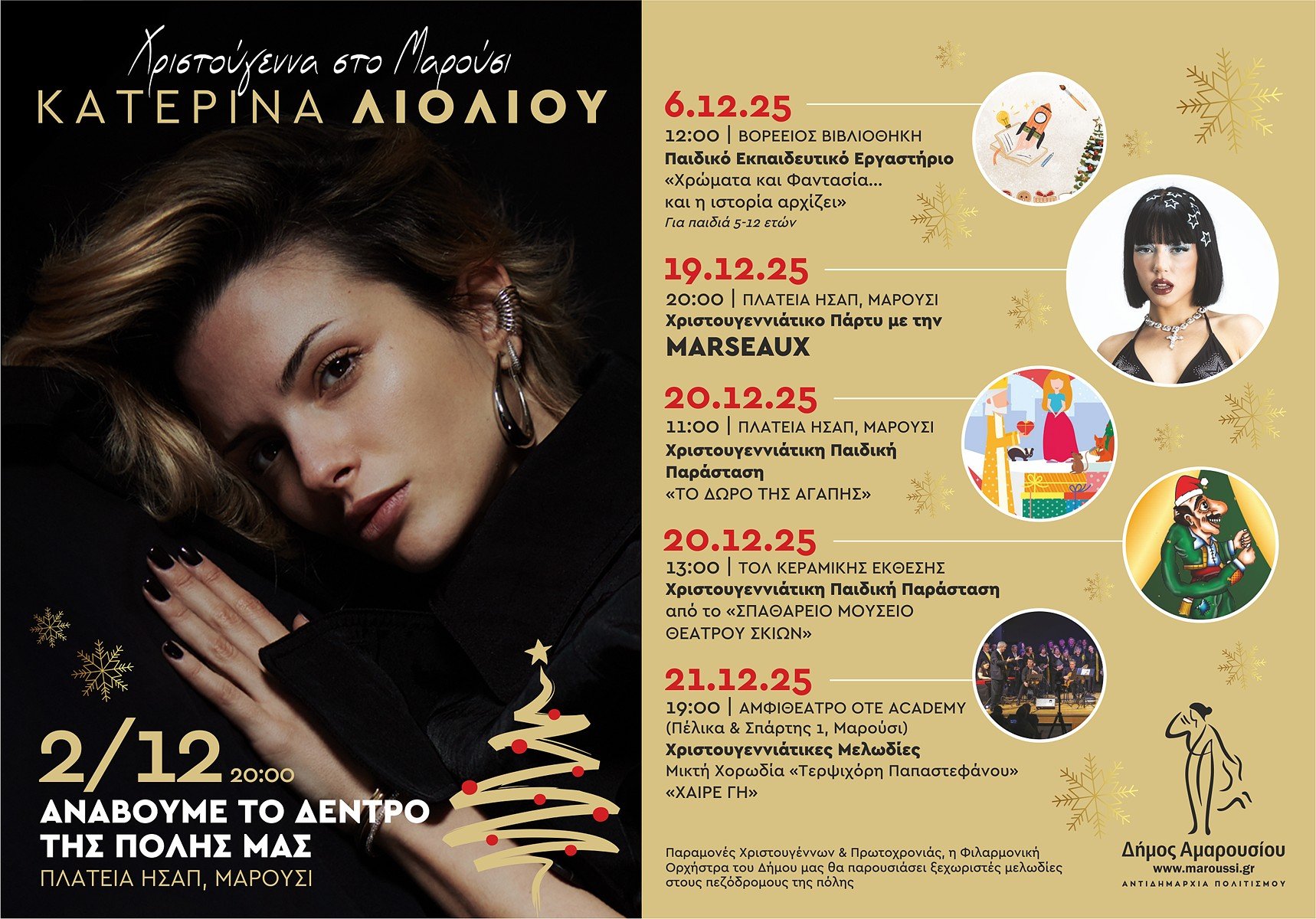 Όλες οι εκδηλώσεις είναι δωρεάν, προσφέροντας χαρά, ζωντάνια και εορταστική διάθεση σε όσους επιλέξουν να περάσουν τις Άγιες Ημέρες στο Μαρούσι.