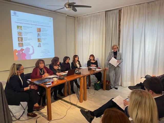 Tιμώντας την Ημέρα της Γυναίκας, η Πρόεδρος της Δημοτικής Επιτροπής Ισότητας του Δήμου Κηφισιάς, κα Μαρία Κεφαλά- Σαλματάνη, σε συνεργασία με την κα Ελένη Πετρά, Υπεύθυνη της Μονάδας Καινοτομίας για τις Γυναίκες του Ε.Κ. ΑΘΗΝΑ, διοργάνωσαν την Παρασκευή 7 Μαρτίου εκδήλωση στη Βίλλα Κώστα με θέμα: “Υποστήριξη Γυναικείας Καινοτομίας & Επιχειρηματικότητας”.
