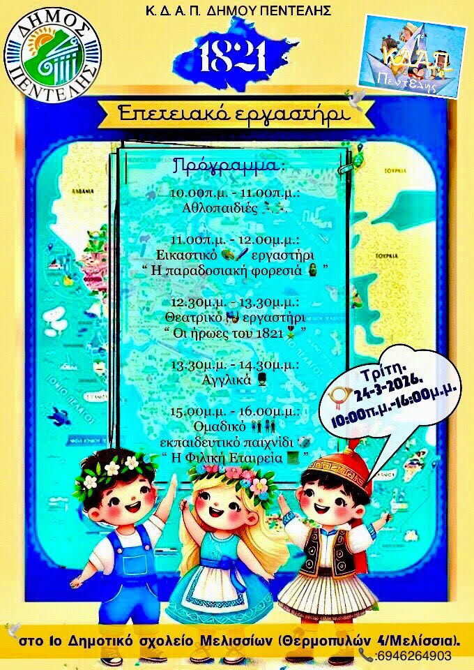Αρχική ΓΕΙΤΟΝΙΚΟΙ ΔΗΜΟΙ ΜΕΛΙΣΙΑ – ΠΕΝΤΕΛΗ Εργαστήρι του ΚΔΑΠ Δήμου Πεντέλης για την επέτειο της 25ης Μαρτίου