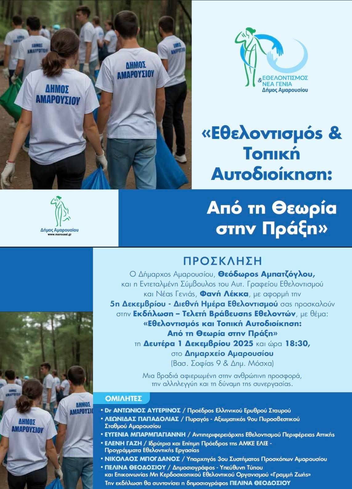 Με αφορμή τη Διεθνή Ημέρα Εθελοντισμού σας προσκαλούμε στην Εκδήλωση – Βράβευση