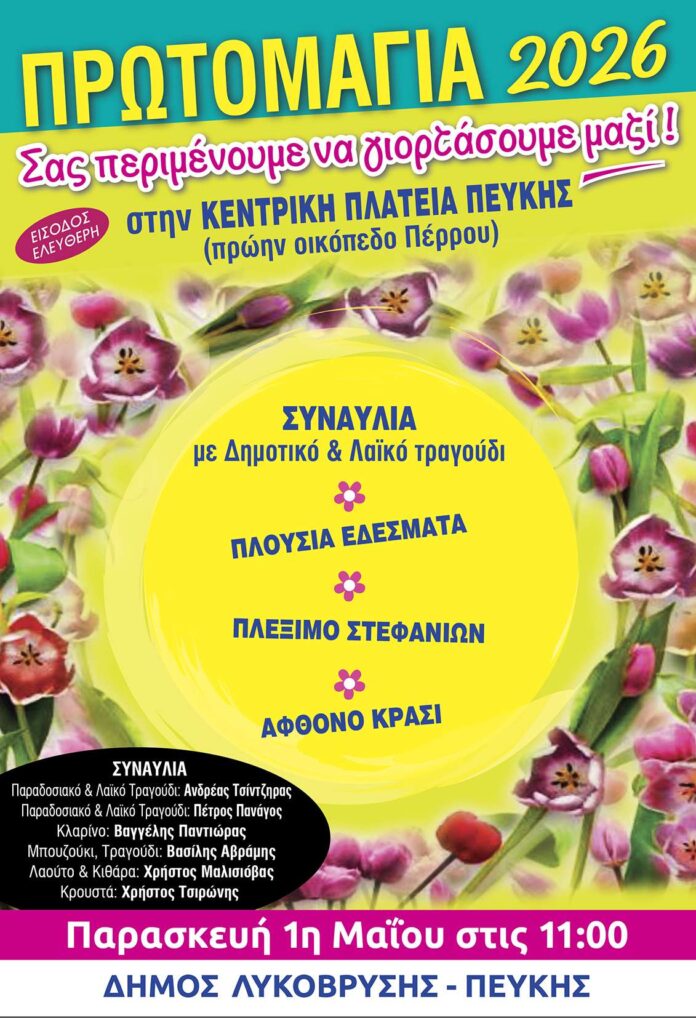 Ο Δήμαρχος Λυκόβρυσης-Πεύκης κ. Μάριος Ψυχάλης δηλώνει: «Η Πρωτομαγιά δεν είναι μια απλή μέρα στο ημερολόγιο. Είναι μια γιορτή της Φύσης και της Άνοιξης, ένα κάλεσμα και μια ευκαιρία να βγούμε και να συναντηθούμε έξω ξανά, σε ένα περιβάλλον πλημμυρισμένο με χρώματα, μουσικές και μυρωδιές από ανοιξιάτικα λουλούδια, αποδεικνύοντας τη δύναμη της συλλογικότητας και της αλληλεγγύης. Σας περιμένουμε όλες και όλους στην Κεντρική Πλατεία Πεύκης για να τη ζήσουμε όλοι μαζί, σαν μια μεγάλη αγκαλιά αισιοδοξίας και χαράς!»