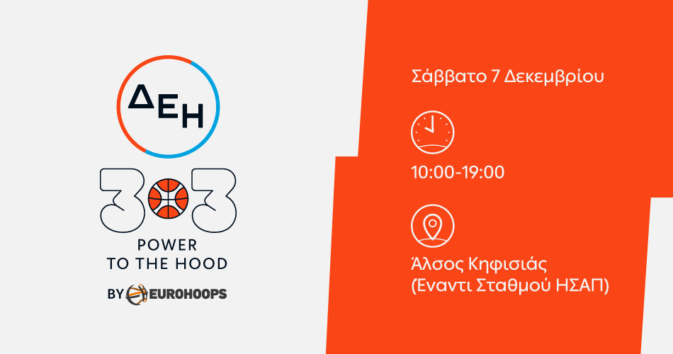 Το ΔΕΗ 3×3 POWER TO THE HOOD by Eurohoops αναδεικνύει τους καθημερινούς «πρωταγωνιστές» κάθε γειτονιάς μέσω της άθλησης, της ψυχαγωγίας αλλά και της διάδοσης του 3×3, του δημοφιλούς, γρήγορου και δυναμικού παιχνιδιού που από τους δρόμους βρέθηκε στους Ολυμπιακούς Αγώνες. Το ΔΕΗ 3×3 POWER TO THE HOOD by Eurohoops έχει «ταξιδέψει» σε Κορυδαλλό, Βούλα, Λαύριο, Μεταμόρφωση, Αμπελόκηπους, Παλαιό Φάληρο, Εύοσμο και Πανόραμα, Μαρούσι, Μοναστηράκι, Νέα Παραλία και Νέα Ιωνία, και θα ακολουθήσουν πολλοί ακόμη «σταθμοί» σε Αθήνα και Θεσσαλονίκη.