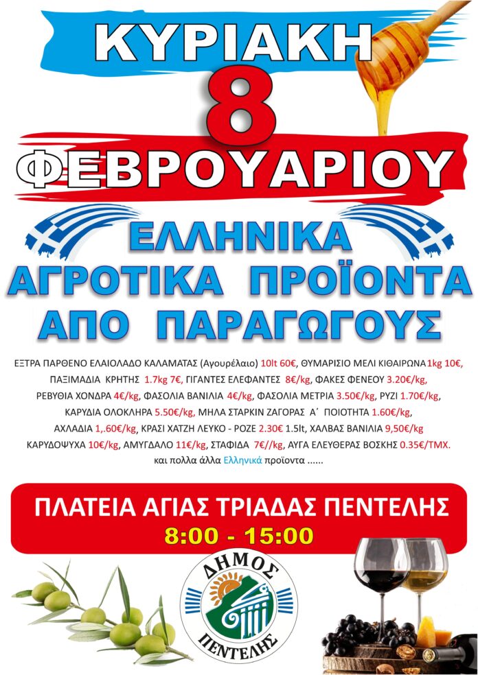 ΓΕΙΤΟΝΙΚΟΙ ΔΗΜΟΙΜΕΛΙΣΙΑ – ΠΕΝΤΕΛΗ Κυριακή 8/2 Πλατεία Αγίας Τριάδας Πεντέλης – Στηρίζουμε τους Έλληνες παραγωγούς! Από maroussi city - 9 Φεβρουαρίου 2026 0 μερίδιο FacebookTwitterWhatsAppLinkedinEmailViber ΚΑΤΕΒΑΣΤΕ ΤΟ APP