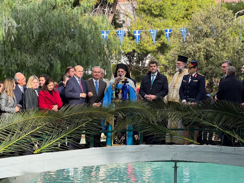 Εκεί πραγματοποιήθηκε η τελετή καθαγιασμού των υδάτων ο πανοσιολογιώτατος Κωνσταντίνος Χαραλαμπόπουλος, πλαισιούμενος από τους αιδιεσιμολογιώτατους, πατήρ Παναγιώτη Σβορώνου (συνεφημέριο του Ι. Ν. Μεταμορφώσεως του Σωτήρος Κηφισιάς) και πατήρ Χρήστου Λυμπερόπουλου (του Ι. Ν. Αγίας Άννας Κηφισιάς), έριξαν τον Σταυρό στα νερά της λίμνης. Μεταξύ άλλων ατόμων που βούτηξαν, υπό το θερμό χειροκρότημα των παρευρισκομένων, ο μικρός Κωνσταντίνος έπιασε το Σταυρό και μέσα σε κλίμα συγκίνησης μαζί με την ευλογία πήρε και τις ευχές όλων.