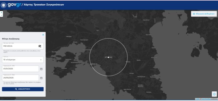 Στον χάρτη θα εμφανιστούν σημεία που αντιστοιχούν σε τροχαίες συγκρούσεις.