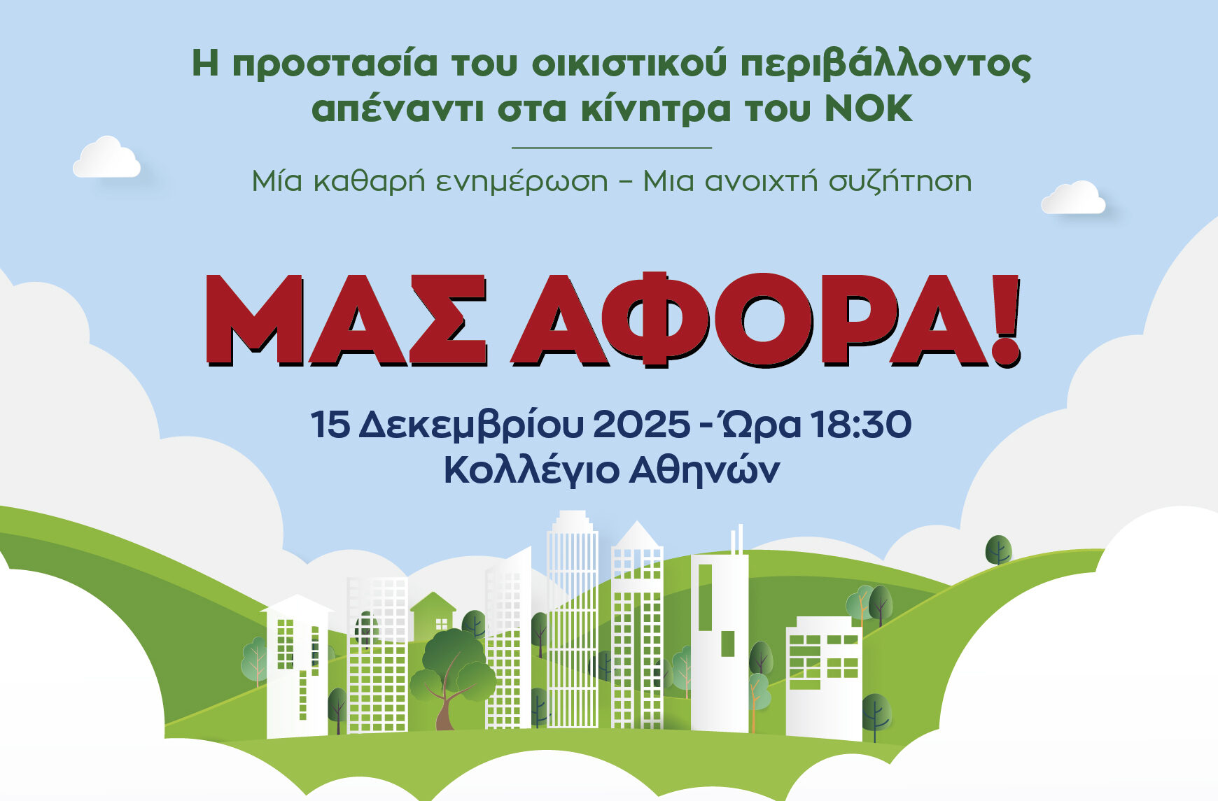 Ο Δήμος Χαλανδρίου συμμετέχει στην εκδήλωση «Η Προστασία του οικιστικού περιβάλλοντος απέναντι στα κίνητρα του ΝΟΚ», η οποία θα πραγματοποιηθεί στο Κολλέγιο Αθηνών, τη Δευτέρα 15.12.2025 και ώρα 18.30.