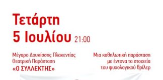 Θεατρική Παράσταση “Ο Συλλέκτης” Τετάρτη 5 Ιουλίου και ώρα 20:30...