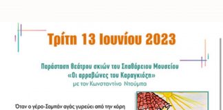 Αλλαγή χώρου διεξαγωγής της σημερινής παράστασης θεάτρου σκιών «Οι αρραβώνες του...