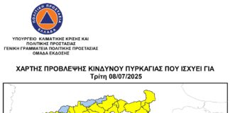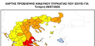 Ακραίος Κίνδυνος πυρκαγιάς – Κατάσταση Συναγερμού για Τετάρτη 9/7 – Κλειστά...