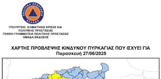 Χάρτης Πρόβλεψης Κινδύνου Πυρκαγιάς για την Παρασκευή 27/6