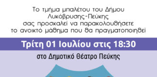 Ανοικτό μάθημα μπαλέτου στο Δημοτικό Θέατρο Πεύκης, την Τρίτη, 01 Ιουλίου...