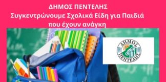 Ο Δήμος Πεντέλης συγκεντρώνει σχολικά είδη για παιδιά ευάλωτων οικογενειών από...