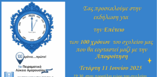 1ο Πειραματικό ΓΕΛ Αμαρουσίου: Επετειακή εκδήλωση «100 Χρόνια Σχολείου & Τελετή...