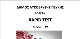 Πραγματοποιήθηκαν δωρεάν rapid tests στο Πνευματικό Κέντρο Λυκόβρυσης. Επόμενα tests την...