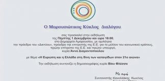 Ενημερωτική εκδήλωση του Μαρουσιώτικου Κύκλου Διαλόγου, στο Δημαρχείο Αμαρουσίου, Πέμπτη...