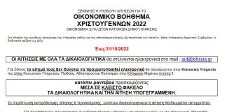 ΞΕΚΙΝΗΣΕ Η ΥΠΟΒΟΛΗ ΑΙΤΗΣΕΩΝ ΓΙΑ ΤΟ ΟΙΚΟΝΟΜΙΚΟ ΒΟΗΘΗΜΑ ΧΡΙΣΤΟΥΓΕΝΝΩΝ 2022...