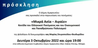 Πρόσκληση στην παρουσίαση του πονήματος “Μικρά Ασία – Αιγαίο”, στο Δημαρχείο...
