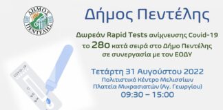 Τεστ ανίχνευσης Covid-19, το 28ο κατά σειρά στο Δήμο Πεντέλης –...