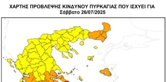 Αυξημένος Κίνδυνος Πυρκαγιάς (κατηγορία 5) για το Σάββατο 26 Ιουλίου