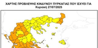 Πολύ υψηλός κίνδυνος πυρκαγιάς κατηγορίας 4, για την Κυριακή 27 Ιουλίου...