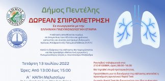 Δωρεάν προληπτική σπιρομέτρηση και ενημέρωση για τη χρόνια αποφρακτική πνευμονοπάθεια των...