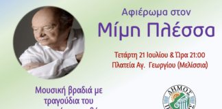Μουσική βραδιά αφιερωμένη στον μουσικοσυνθέτη Μίμη Πλέσσα – Πλατεία Αγίου Γεωργίου...