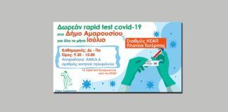 Από τη Δευτέρα 12/7, η διαδικασία των rapid test θα διενεργείται...