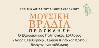 Μουσική βραδιά από τον Εξωραϊστικό Σύλλογο Σωρού και Λάκκας Κόττου «ο...