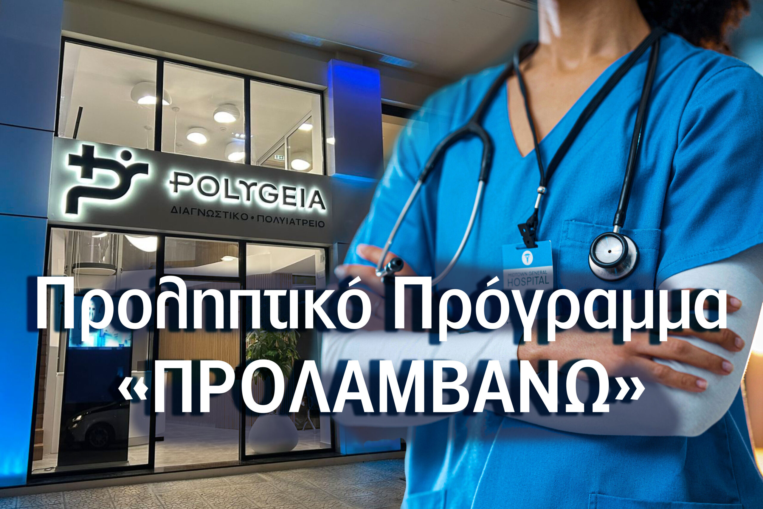 Το Διαγνωστικό Πολυϊατρείο POLYGEIA συμμετέχει ενεργά στο Εθνικό Πρόγραμμα Πρόληψης «ΠΡΟΛΑΜΒΑΝΩ» του Υπουργείου Υγείας και προσφέρει οργανωμένα δωρεάν προληπτικούς ελέγχους. Μέσα από αυτή τη συμμετοχή, ενισχύουμε ουσιαστικά την πρόληψη και συμβάλλουμε άμεσα στην έγκαιρη διάγνωση σοβαρών παθήσεων.