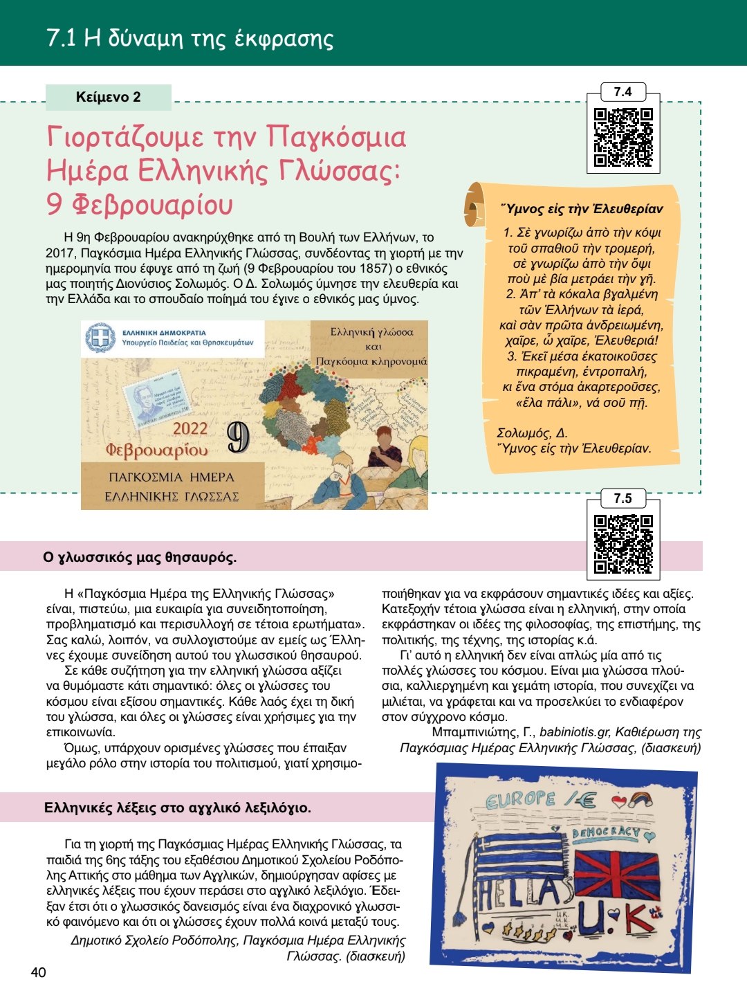 Η εργασία, η οποία εκπονήθηκε υπό την εμπνευσμένη καθοδήγηση της εκπαιδευτικού κ. Βιβής Καλογερίδη, αφορά τον εορτασμό της Παγκόσμιας Ημέρας Ελληνικής Γλώσσας. Η συμπερίληψή της στο επίσημο διδακτικό υλικό της χώρας αποτελεί την ύψιστη ηθική αναγνώριση της δημιουργικής και μεθοδικής δουλειάς που επιτελείται στις σχολικές μας αίθουσες. Η διάκριση αυτή αναδεικνύει το Δημοτικό Σχολείο Ροδόπολης ως μια πρότυπη εκπαιδευτική κοινότητα, όπου το παραγόμενο έργο ξεπερνά τα όρια της σχολικής μονάδας και αποκτά εθνική εμβέλεια, αποτελώντας παράδειγμα προς μίμηση.