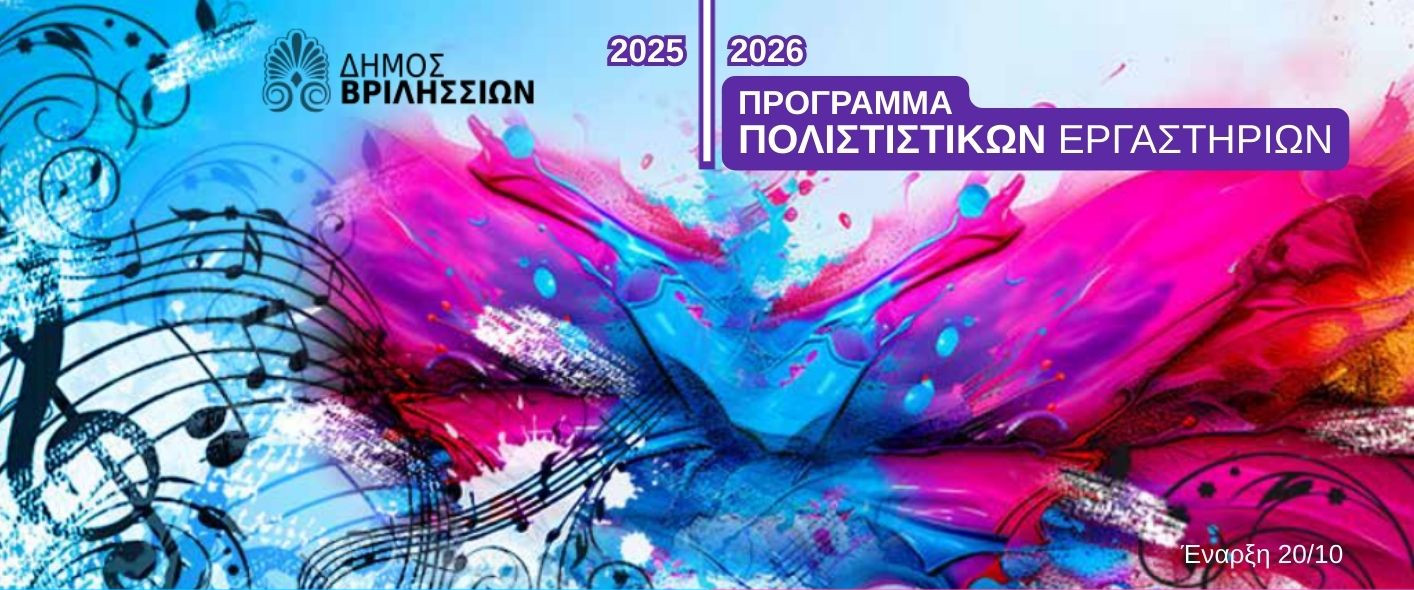 Aπό Δευτέρα 20 Οκτωβρίου ξεκινούν οι εγγραφές στα Πολιτιστικά Εργαστήρια του Δήμου Βριλησσίων 2025-2026.